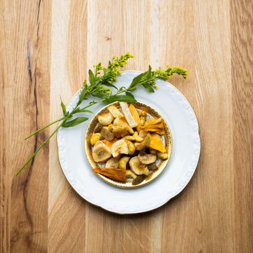 Eine ganz besonders schöne Idee hatte Jalall D’or mit ihren (W)einklang Mischungen. Gemeinsam mit einer Sommelière aus Münster wurde eine außergewöhnliche Zusammenstellung aus Nüssen und Trockenfrüchten entwickelt, die das Glas Wein perfekt ergänzen. Die (W)einklang-Mischung No.4 passt perfekt zu cremig und kraftvollen Weißweinen wie zu m Beispiel dem Sauvignon Blanc. Eine harmonische Mischung aus Bananenchips, grünen Rosinen, Ingwerstäbchen, getrockneter Ananas und Mango wird ergänzt durch würzige Curry- Cashewkerne. Eine wirklich köstliche und ganz besondere Snack-Alternative, die mit der schwarzen Verpackung auch eine tolle Geschenkidee bietet.